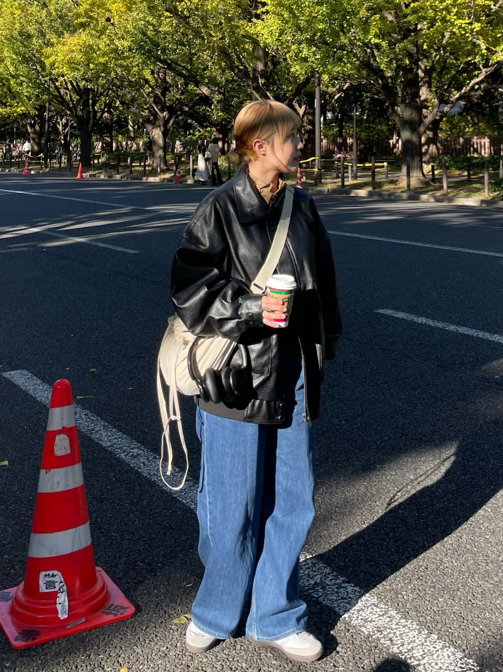 レザージャケットはスニーカーを上手に活用してカジュアルにもっていきます🎀