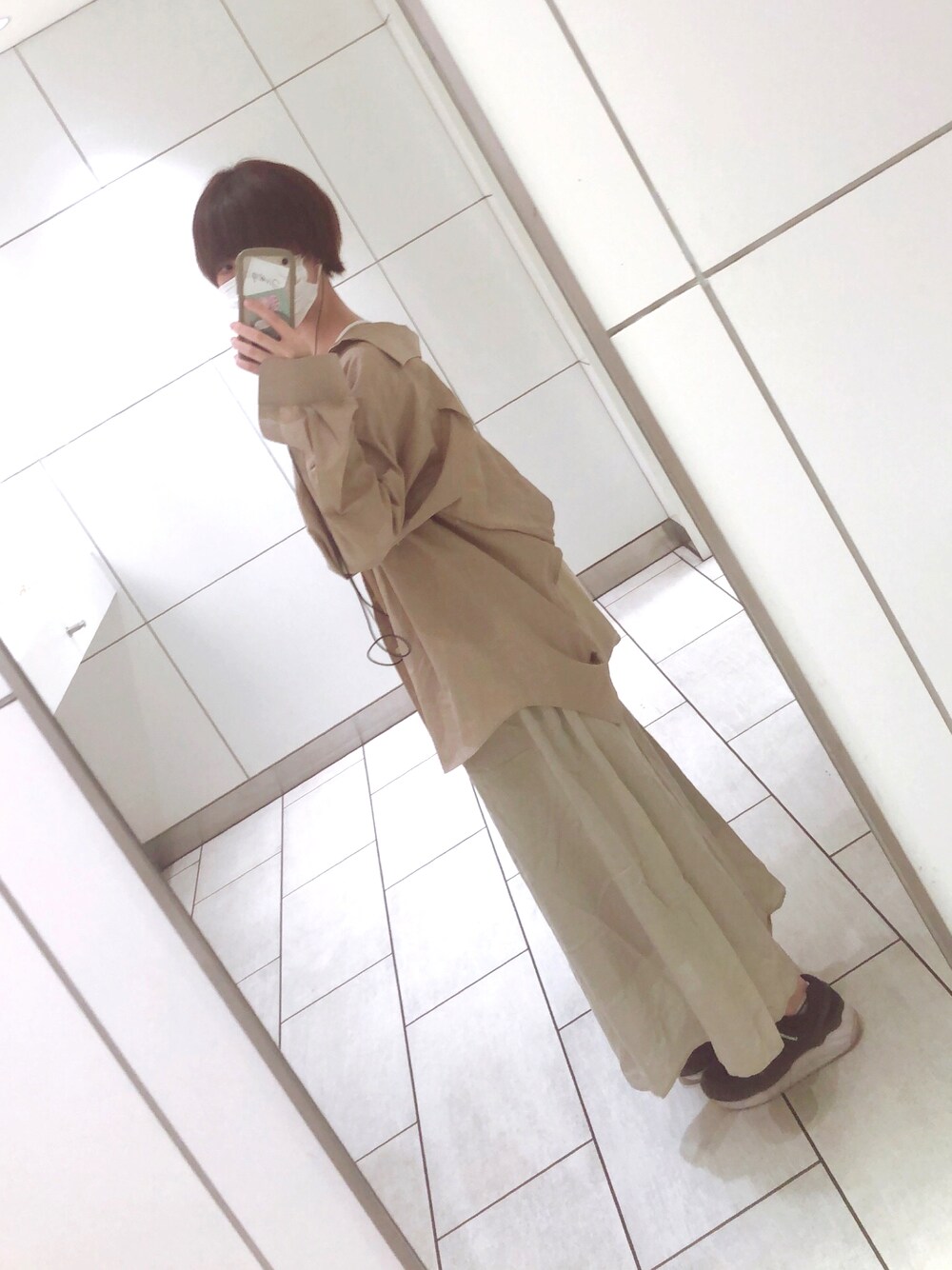 ベージュ系のシャツ/ブラウスを着用したレディースの秋コーディネートの1枚目の写真