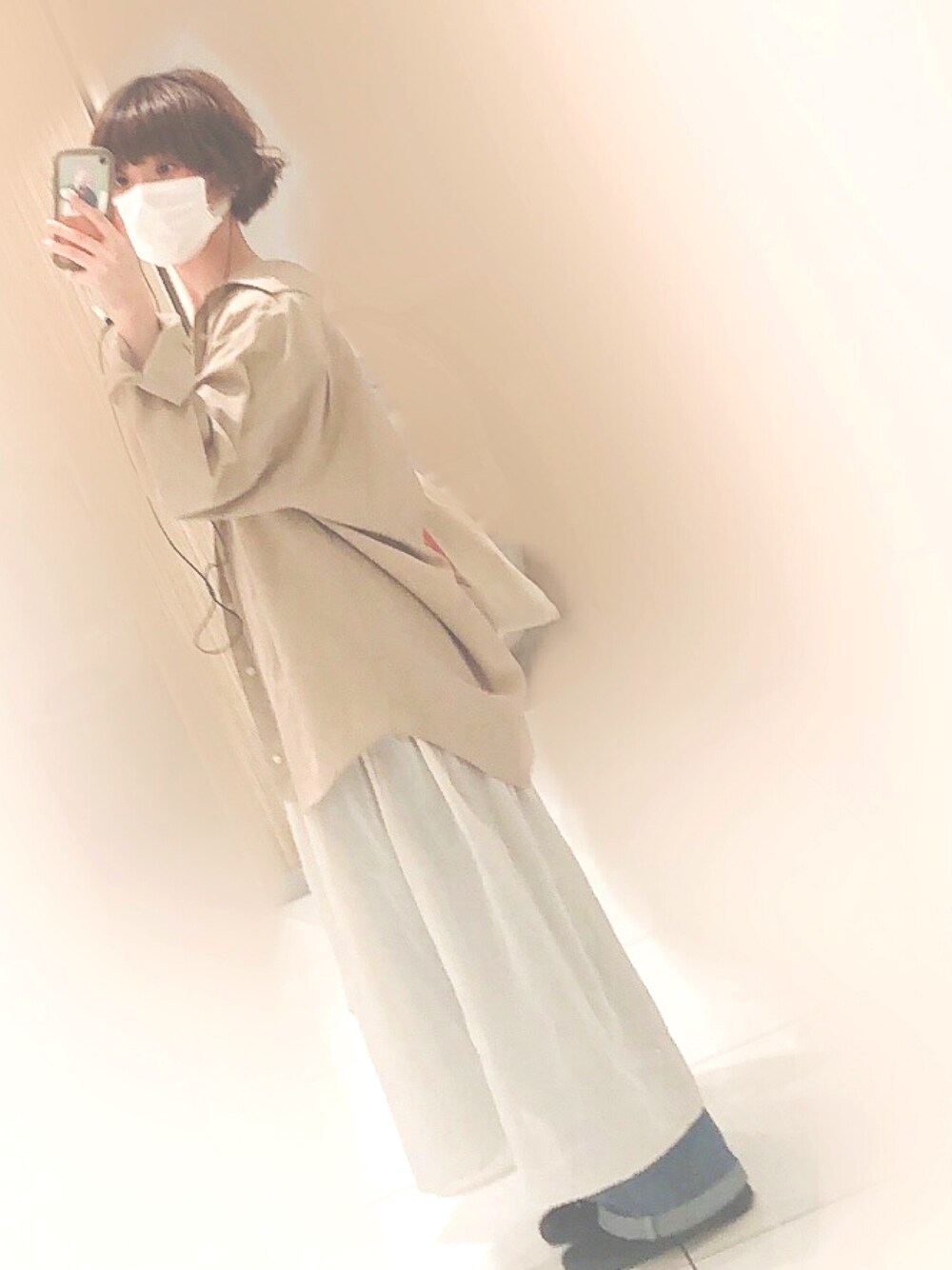 きのこになってましたが、またパーマあてました☆ お気に入りのワンピースに同型色のオーバーサイズシャツでゆるっと。 この写真めっちゃ背が高く見えるな。なんでや。