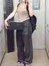 ***のデニムパンツ「レディース ハイウエスト&タックのルーズデニムパンツ ワイド」を使ったコーディネート