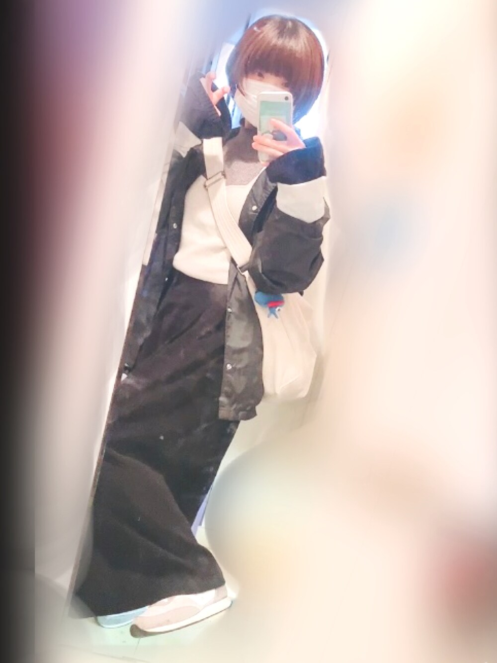 古着のコーチジャケット+古着のスカート+ショートウルフ
