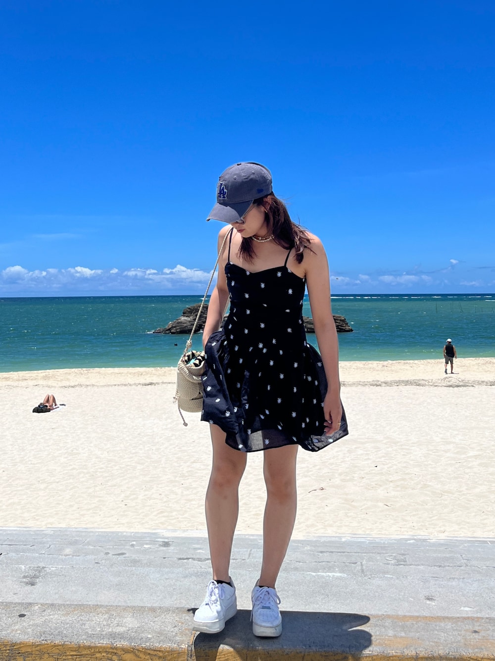 ワンピース1枚でらくちん🌼 キャップは現地調達👀