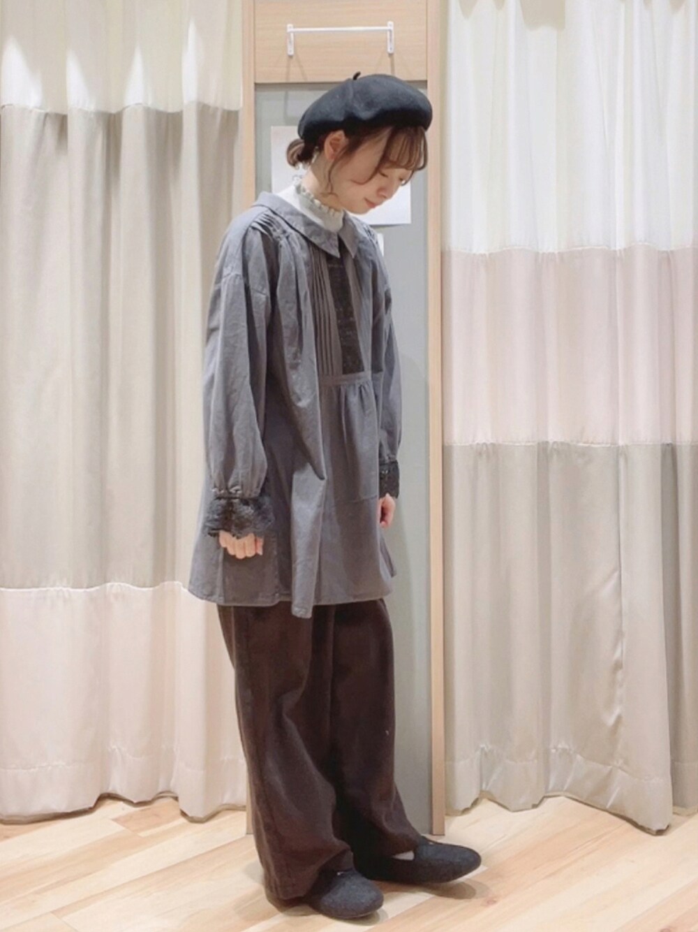 ご覧頂きありがとうございます◌𓈒 今回は、大人ガーリーなワントーンコーデのご紹介です🥨 胸元と袖口のレースがポイントのチュニックブラウスは、1枚でもコーディネートが決まる アイテムとなっております𓂃𓆸⋆* 今回はインナーにタートルネックを合わせてますが、 ニットカーディガンとも相性抜群です𓇢 ゆるストレートなシルエットが可愛いパンツは、ウエスト部分がゴムになっているので ノンストレスな履き心地となっております🌿 裏地が着いているので、とても暖かく、 これからの時期にピッタリなパンツとなっております𓂃𓍯