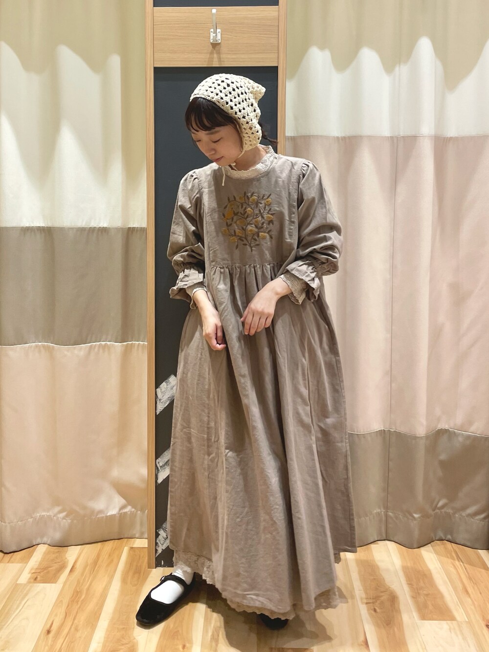 おなべ𓍯のワンピース「【マカベアリス×Samansa Mos2】【S/Mサイズ】果物柄刺繍ワンピ」を使ったコーディネート