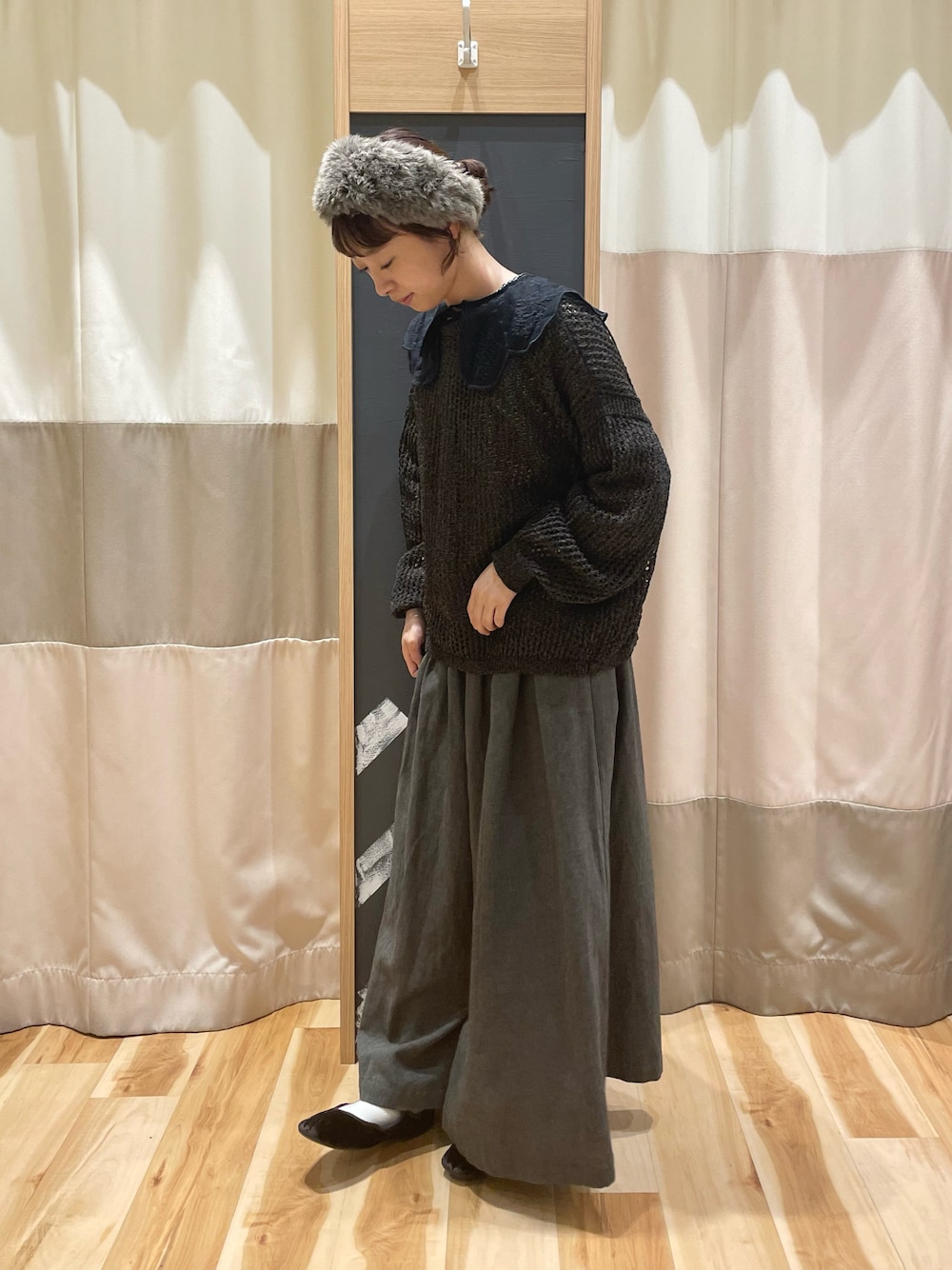 おなべ𓍯のニット/セーター「透かし柄前後2WAYニット」を使ったコーディネート