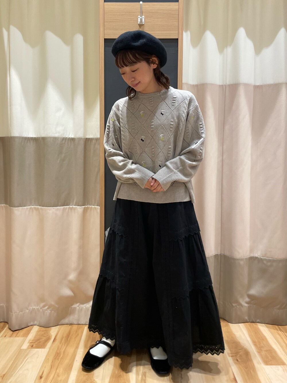 おなべ𓍯のニット/セーター「実柄刺繍アーガイル透かしニット」を使ったコーディネート