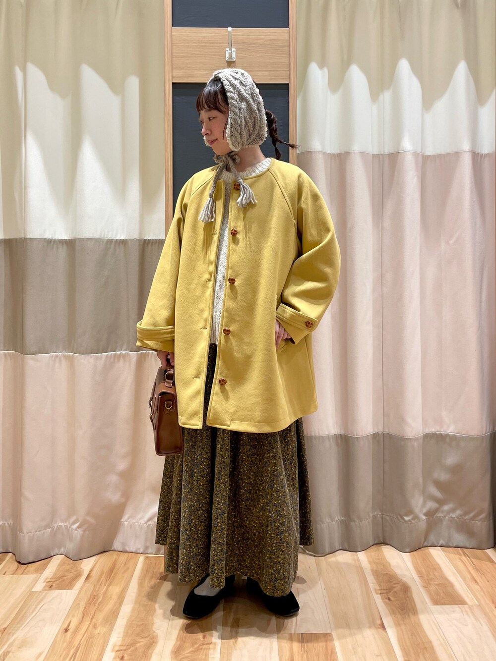 ご覧いただきありがとうございます🧺☁ イエローアイテムを使って レトロなカラーコーデに𓂃 🍋 アウターのボタンと同色のカバンを合わせて 統一感を意識しました。