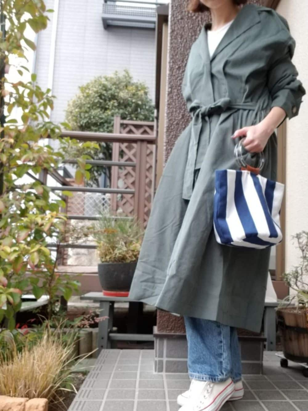 ヘビロテ中のスプリングコートを今日はワンピース風に着まわしです。 わたしは背が高くないので、重たくならないように合わせるアイテムはライトな色味を選びましたー! 👜は最近作った中で1番のお気に入り♡