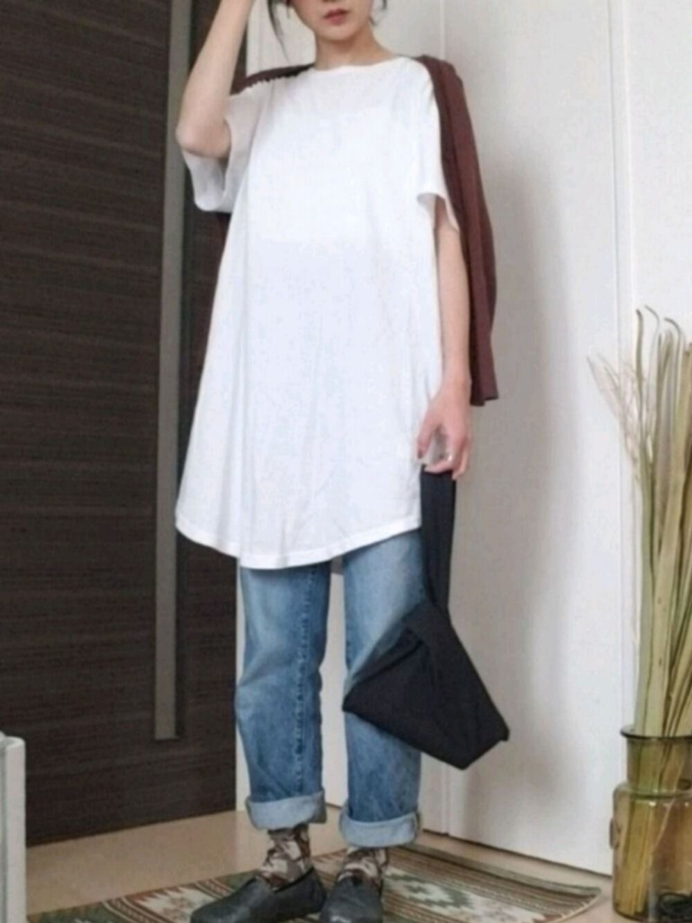 ご覧くださりありがとうございます🌿 H&MのメンズTシャツがメインの 軽やかお出掛けコーデに しました👖