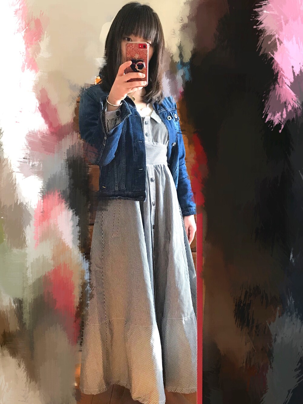 *rara*のワンピース「STRIPE FLARE ドレス」を使ったコーディネート