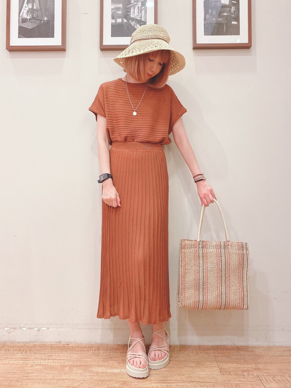 ご覧いただきありがとうございます♪ ¨̮⋆♡⋆♡⋆♡⋆♡⋆♡⋆♡⋆♡⋆♡⋆♡⋆♡⋆♡⋆♡⋆¨̮ WORLD online Storeにも 沢山のコーディネートを載せてます♪ →プロフィールの🖥をチェック👈 ¨̮⋆♡⋆♡⋆♡⋆♡⋆♡⋆♡⋆♡⋆♡⋆♡⋆♡⋆♡⋆♡⋆¨̮ シアーニットのセットアップコーディネートです★ 今年らしいシアー感のあるニットなので、見ためにも涼やかです♪ 雑材の小物と合わせてさらに夏らしく!