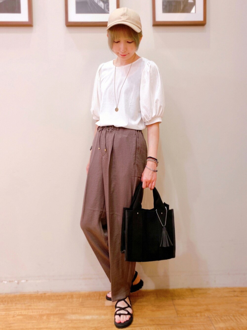 おはようございます、 ご覧いただきありがとうございます★ いいね、お気に入りありがとうございます。 ひんやり袖ギャザーTシャツと麻調イージ-パンツのコーディネートです! ホワイト×ブラウンのキレイめコーデにあえてカジュアルなスポサンとキャップを合わせてこなれ感をだしてみました♪ トップスは接触冷感でひんやり夏にピッタリな一枚です。 パンツはセンタープレスでスッキリ見え◎ WORLD online Storeにも沢山のコーディネートを載せてます♪ →プロフィールの🖥をチェック👈