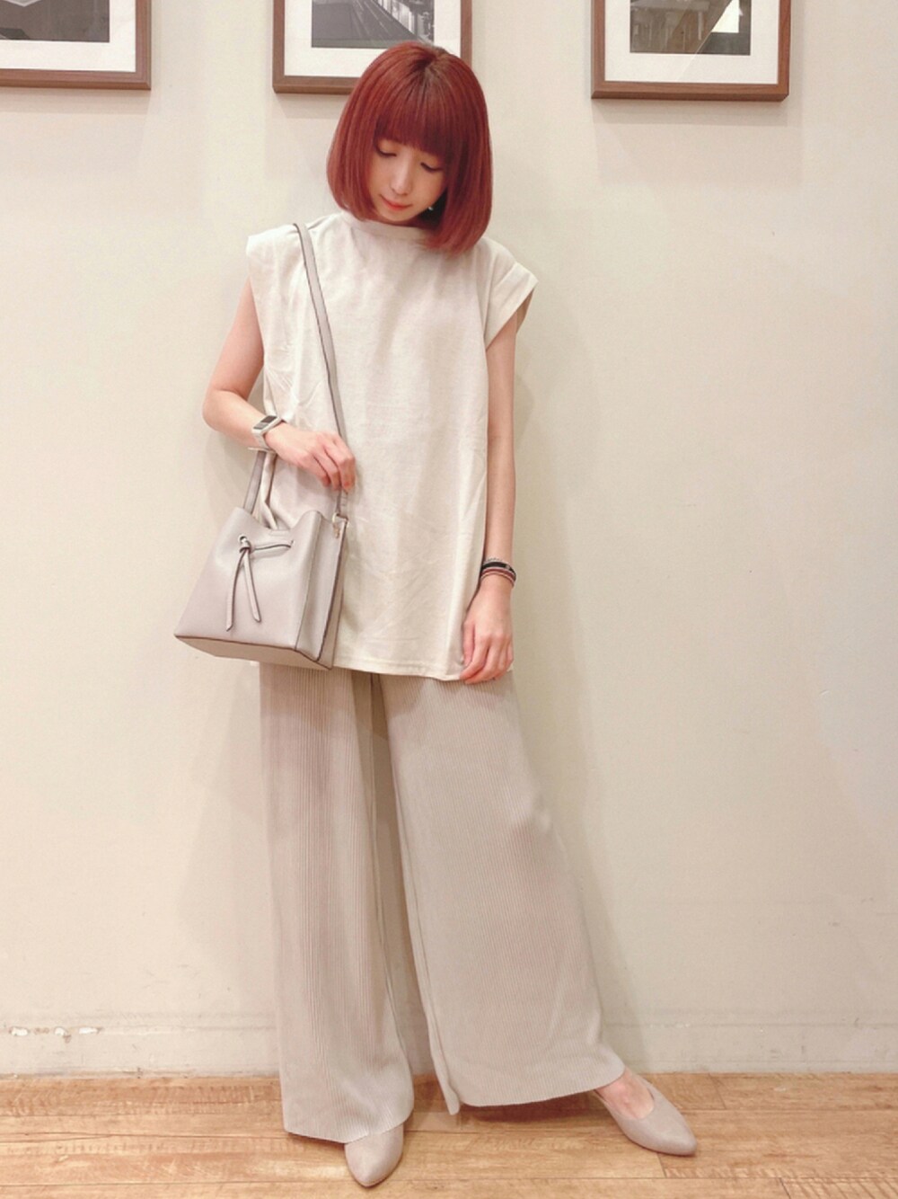 おはようございます、 ご覧いただきありがとうございます★ いいね、お気に入りありがとうございます。 フォルダインもとっても嬉しいです😊 ショルダータックTシャツとプリーツパンツの淡色ワントーンコーデです! Tシャツは今年注目のショルダータックデザインでノースリーブでも二の腕スッキリ見え◎丈も長めでパンツスタイルにピッタリです! パンツは大人気のプリーツパンツ、軽い履き心地で楽ちんです♪ WORLD online Storeにも沢山のコーディネートを載せてます♪ →プロフィールの🖥をチェック👈