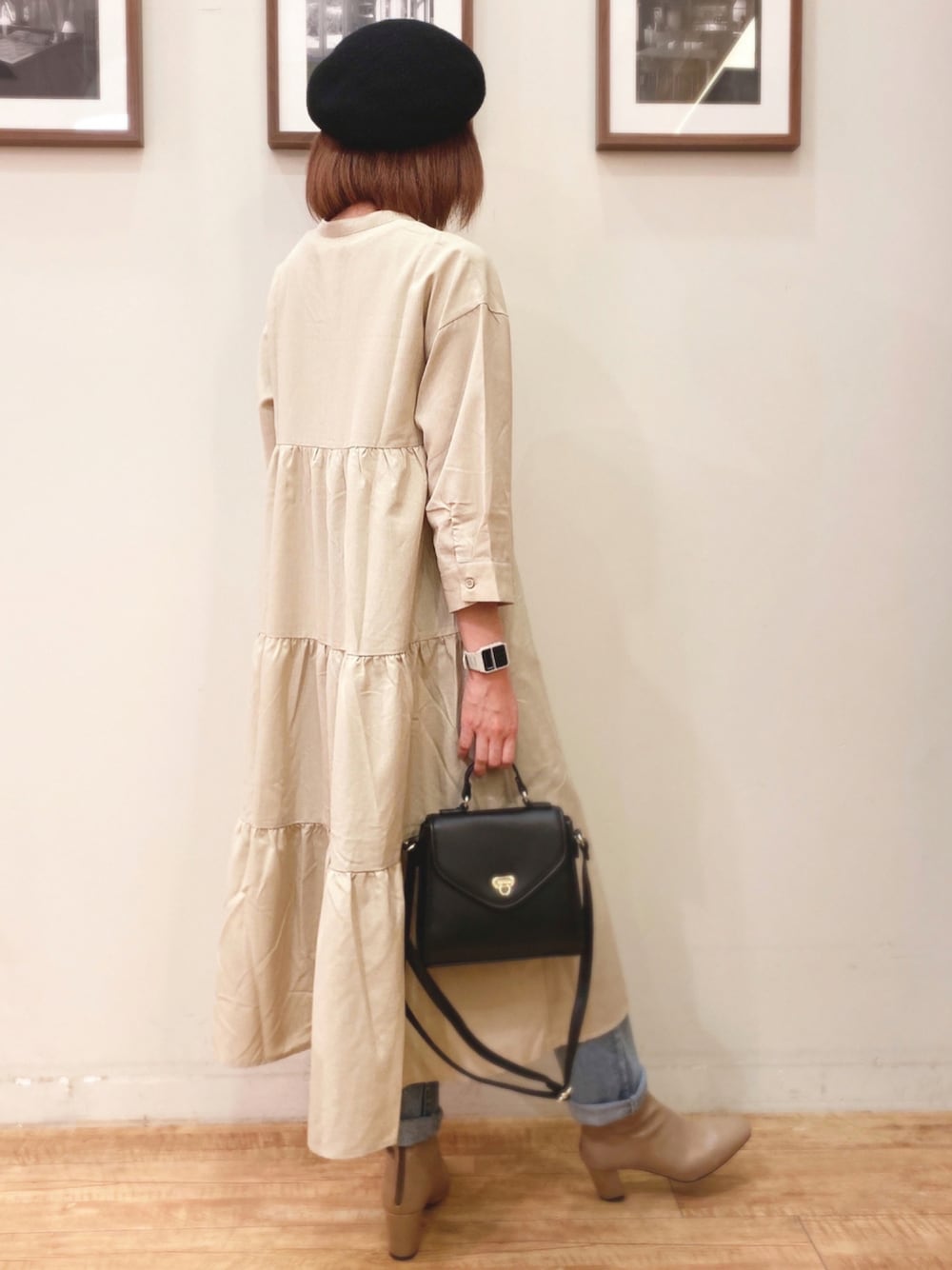 こんにちは、 ご覧いただきありがとうございます★ いいね、お気に入りありがとうございます。 フォルダインもとっても嬉しいです😊 バックティアードロングワンピースのコーディネートです! ワンピースはバックシルエットがインパクトのあるティアードデザインで一枚でもオシャレです。前はボタンで羽織りとしても◎ デニムとショートブーツを合わせて秋っぽコーデにしてみました♪ WORLD online Storeにも沢山のコーディネートを載せてます♪ →プロフィールの🖥をチェック👈