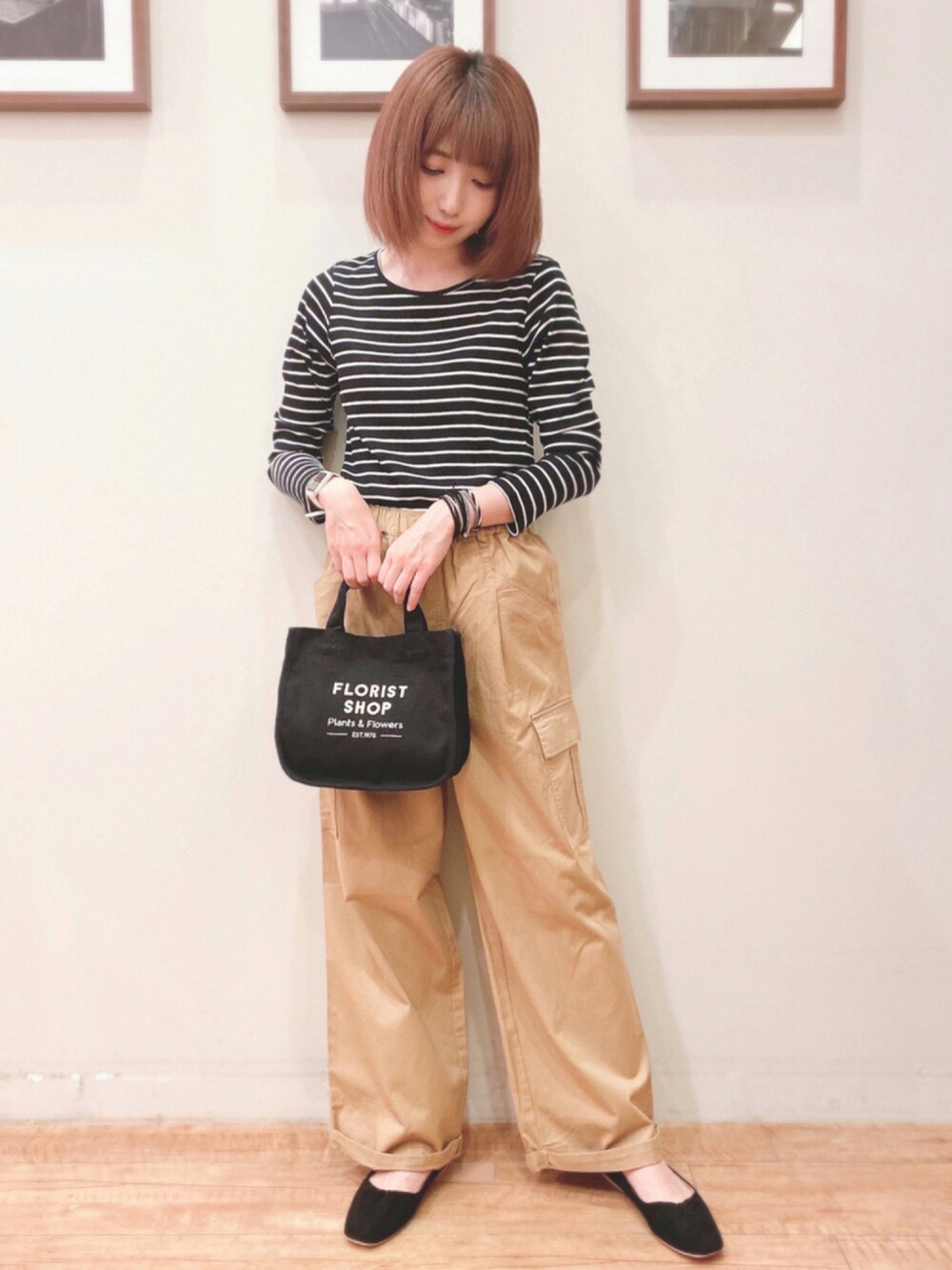おはようございます、 ご覧いただきありがとうございます★ いいね、お気に入りありがとうございます。 フォルダインもとっても嬉しいです😊 リブクルーネックジャージとゆったりカーゴパンツのコーディネートです! トップスは生地感がリブ素材でしっかりめなので一枚でももちろん、サロペットやオーバーオールのインナーにも合わせやすいです。 パンツはワイドめなカーゴパンツでウェストもゴムで楽ちんです! ボトムにボリュームのあるアイテムを持ってきたのでトップスはスッキリとメリハリのでるコーデにしました♪ WORLD online Storeにも沢山のコーディネートを載せてます♪ →プロフィールの🖥をチェック👈