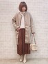 おはようございます、 ご覧いただきありがとうございます★ いいね、お気に入りありがとうございます🙏✨ フォルダインもとっても嬉しいです😊 パイピングコート× ふわふわニット×ベロアスカートのキレイめコーデです✨ アウターはレザー調のパイピングデザインがオシャレな、ミディー丈コートのコーディネートです! カジュアルにもキレイめにも合わせやすく着回し◎ ノーカラーコートで大人コーデにピッタリです。 身体のラインを拾わないルーズなシルエットも嬉しいポイントです👌 トップスはふわふわ素材が可愛いデザインニットプルオーバーです! ざっくりとした編みで立体感もあり、ふわふわ素材がより引き立つデザインになっています🧶 ボリューム袖なのも今年らしい一枚です✨ スカートは少し光沢のあるベロア素材が今年らしいプリーツスカートです! ベーシックなトップスと合わせてもいつもと少し違ったこなれた雰囲気に仕上がります👍 ウエストは総ゴム仕様で着心地もバッチリです♬ WORLD online Storeにも沢山のコーディネートを載せてます♪ →プロフィールの🖥をチェック👈