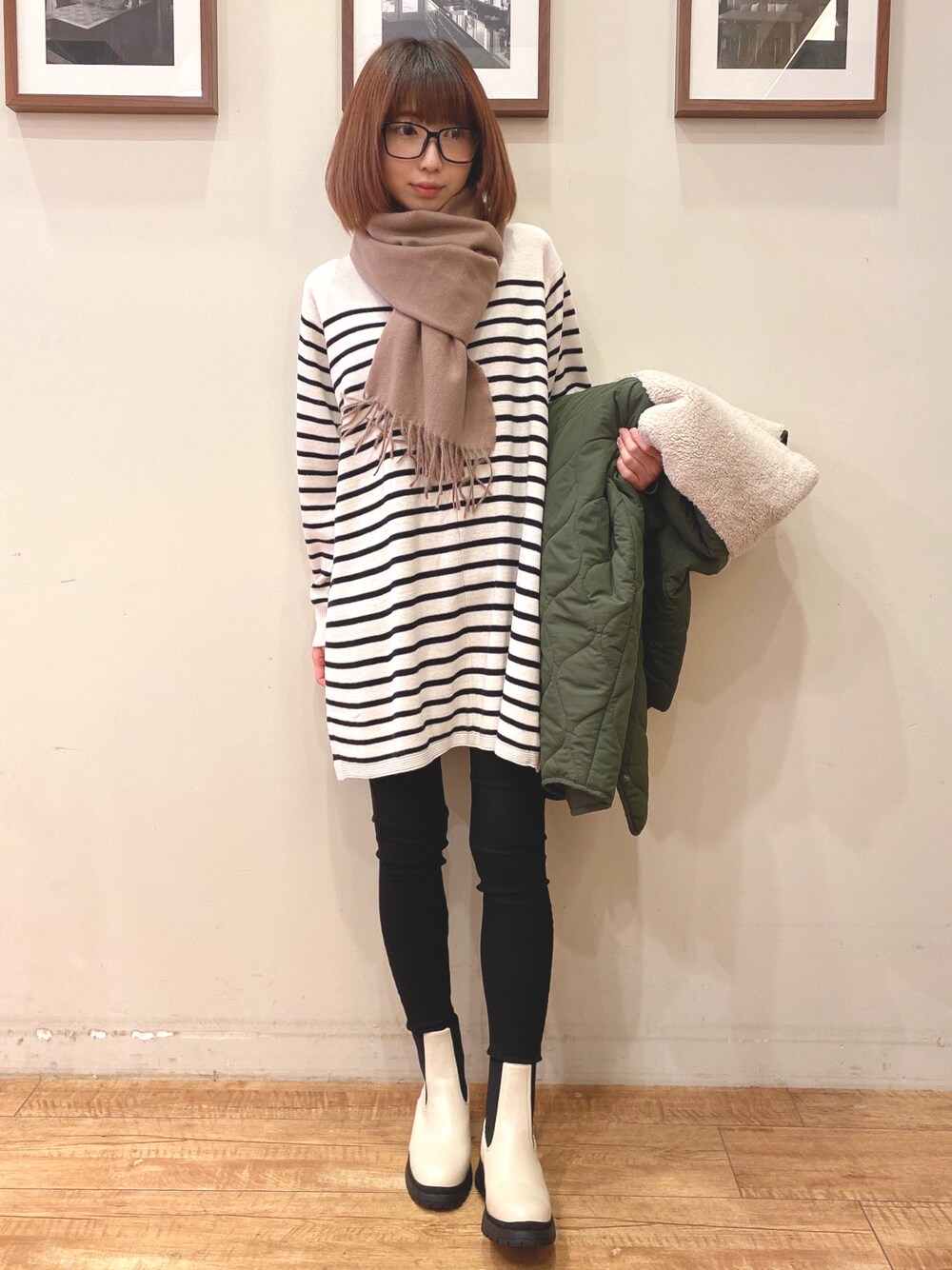 おはようございます、 ご覧いただきありがとうございます★ いいね、お気に入りありがとうございます🙏✨ フォルダインもとっても嬉しいです😊 キルティングコート×ボーダーチュニック×スキニーパンツのカジュアルコーデです♬ アウターはボアとキルティングの切り替えデザインがオシャレなコートです! ビッグシルエットが今年らしい一枚です👍 しっかりと中綿を詰めているので冬の防寒アウターとして活用いただけます⛄️ トップスはゆったりしたコクーンシルエットと深めのスリットがオシャレなチュニックワンピースです! ふんわりした袖もさりげないポイントになって可愛いです♪ パンツはシューラルー定番のスキニーパンツです! 3Dパターンで作成したシルエットと履き心地の良いウルトラストレッチ素材なので、めちゃくちゃ楽ちんです👌 WORLD online Storeにも沢山のコーディネートを載せてます♪ →プロフィールの🖥をチェック👈