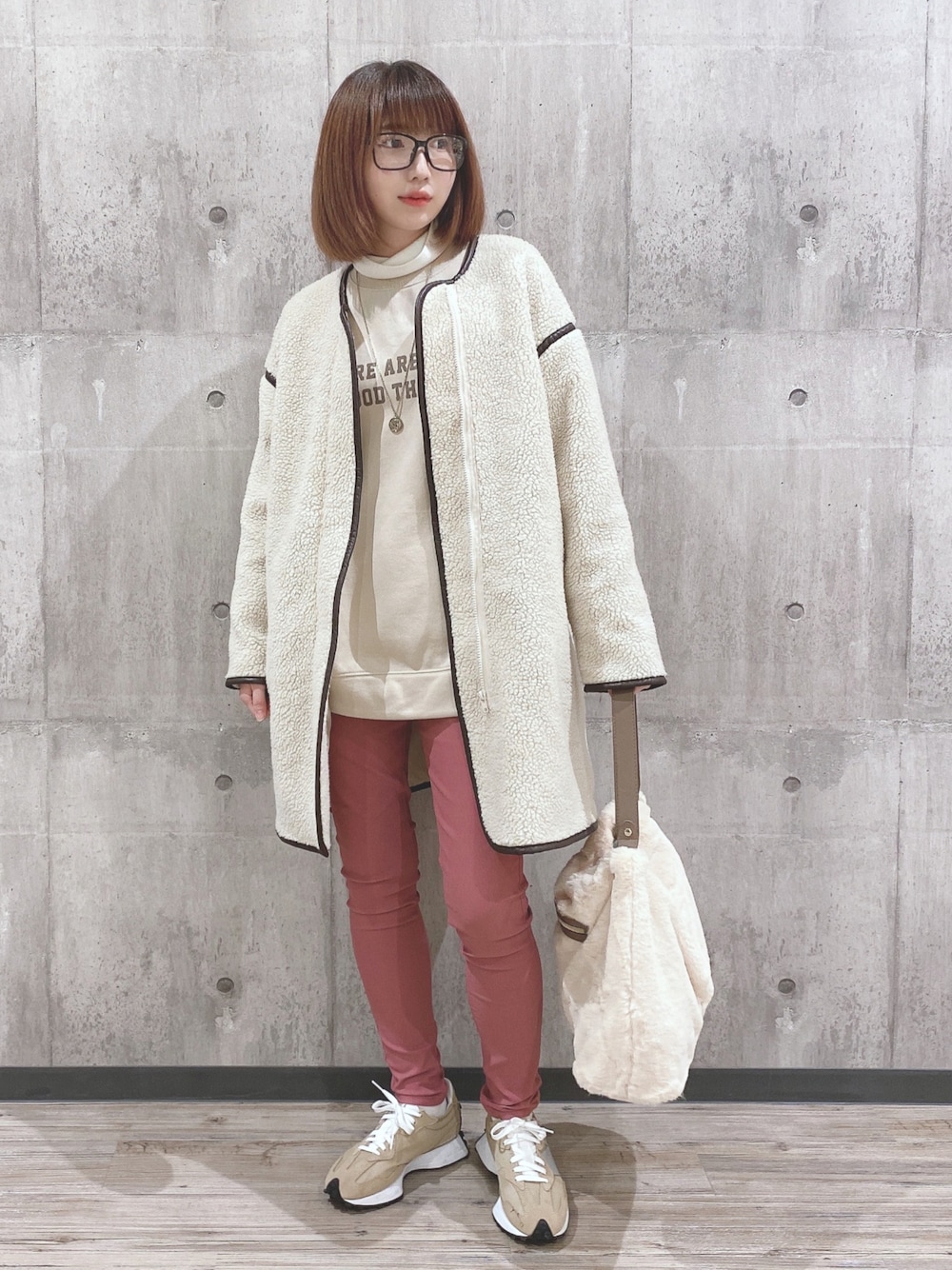 おはようございます、 ご覧いただきありがとうございます★ いいね、お気に入りありがとうございます🙏✨ フォルダインもとっても嬉しいです😊 ボアコート×ロゴスウェット×スキニーパンツのカジュアルコーデです♬ アウターはパイピング使いがアクセントになっているボアコートです! すっきりとしたノーカラーでハイネックのトップスやマフラーとの相性◎🙆♀️✨ ドロップショルダーでゆったりとしたシルエットなので、厚手のインナーとも合わせられます👍 トップスは冬にオススメの裏起毛素材を使用したプルオーバーです⛄️✨ オーバーサイズが可愛く、ロゴデザインで一枚でもサマになります🙆♀️✨ パンツはシューラルー定番のスキニーパンツです! 3Dパターンで作成したシルエットと履き心地の良いウルトラストレッチ素材なので、めちゃくちゃ楽ちんです♬ WORLD online Storeにも沢山のコーディネートを載せてます♪ →プロフィールの🖥をチェック👈