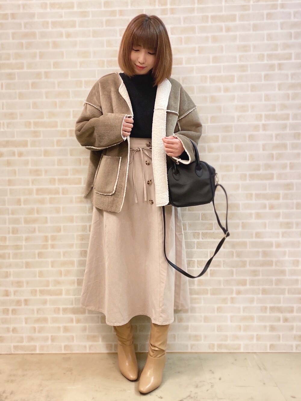 おはようございます、 ご覧いただきありがとうございます★ いいね、お気に入りありがとうございます🙏✨ フォルダインもとっても嬉しいです😊 裏ボアブルゾン× ショルダータックカットソー× フレアスカートのコーディネートです♬ アウターはやわらかなカットコール生地と内側にボアを使用したブルゾンです。 とっても柔らかい素材なのと、ノーカラーに加え、ボタンレスのデザインでカーデ感覚の着やすさです! ほど良くゆったりとしたシルエットも今年らしい一枚です! 着丈もパンツやスカート、ワンピースの羽織りとしても合わせられ着回し抜群です! トップスはショルダータックがスタイリングにこなれ感をプラスするプルオーバーです! 気になる肩周りを華奢に見せてくれる嬉しい効果も◎ カジュアルからキレイめまで幅広く合わせやすいアイテムです! スカートはボタンデザインがポイントになったフレアースカートです! 共生地細ベルトも可愛いポイントになり、 ウエストや腰回りを華奢に見せるのでスタイルアップ効果も◎ WORLD online Storeにも沢山のコーディネートを載せてます♪ →プロフィールの🖥をチェック👈