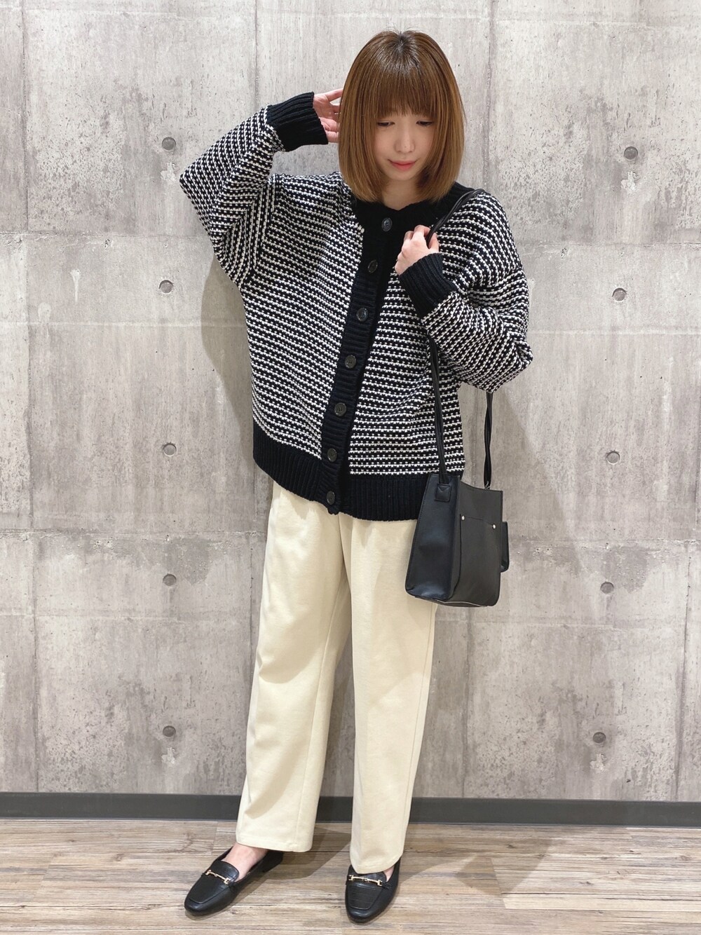 こんばんは、 ご覧いただきありがとうございます★ いいね、お気に入りありがとうございます🙏✨ フォルダインもとっても嬉しいです😊 リンクス柄クルーカーディガン×テーパードパンツのコーディネートです♬ トップスは凹凸の立体柄を複数本の糸でざっくり編んだニットカーディガンです! 本体の柄を引き締める太めのリブ切り替えでゆるさの中にもキリっとした印象になります。 ゆったりシルエットで今年らしいスタイングに見せてくれます。 前後2way仕様で使えるのも嬉しいポイントです! パンツは程よいゆるさが心地よいセミワイド~裾にむかって細くなるゆるテーパードパンツです! センタープレスが入っているので、キレイめコーデにも合わせられます。 WORLD online Storeにも沢山のコーディネートを載せてます♪ →プロフィールの🖥をチェック👈