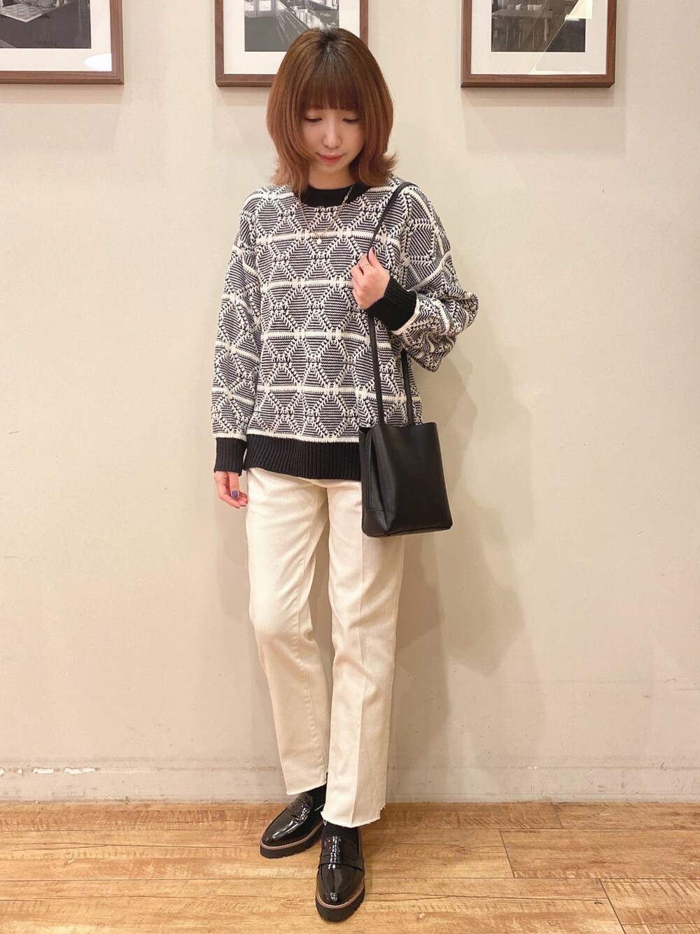 おはようございます、 ご覧いただきありがとうございます★ いいね、お気に入りありがとうございます🙏✨ フォルダインもとっても嬉しいです😊 ダイヤ柄ニット× デニムパンツのコーディネートです♬ トップスはダイヤ柄のアソート柄ニットです! 表面感のあるジャガード柄がオシャレです。 適度に厚みがありながら、ボディラインを拾いにくいゆるっとしたシルエットで、今年らしい印象に仕上げてくれます。 ネックや袖口、裾のリブもアクセントになり、スタイル問わず幅広いコーディネートにマッチします。 パンツはセンタープレス入りのきれいめに穿けるデニムパンツです! フリンジ仕上げの裾が抜け感をプラスしています。 裾に前後差を入れたイレヘムが今年らしいです。 WORLD online Storeにも沢山のコーディネートを載せてます♪ →プロフィールの🖥をチェック👈
