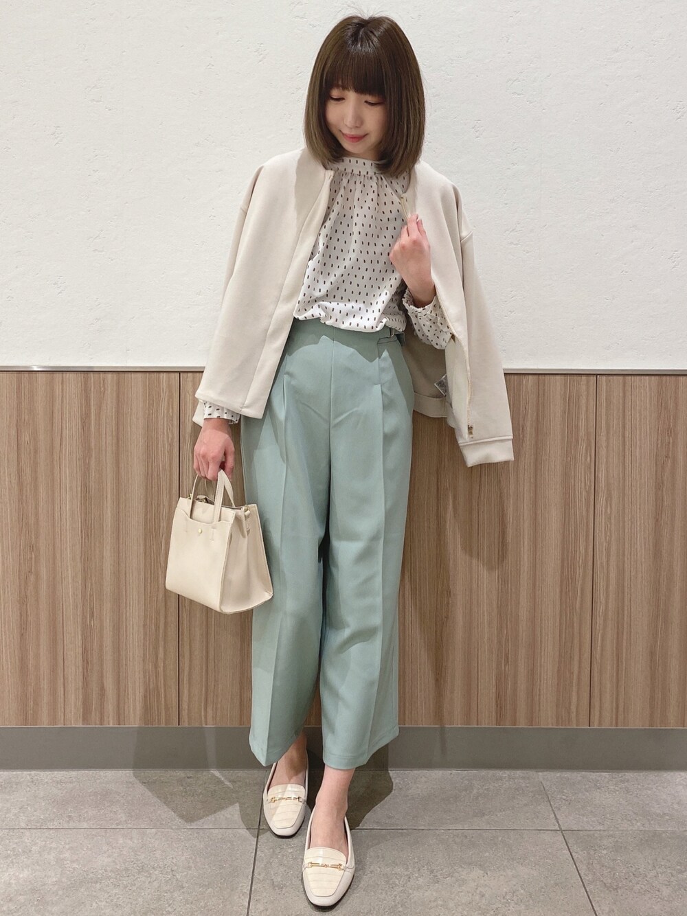 おはようございます、 ご覧いただきありがとうございます★ いいね、お気に入りありがとうございます🙏✨ フォルダインもとっても嬉しいです😊 ノーカラージャケット× ハイネックギャザーブラウス× ワイドパンツのキレイめコーデです♬ ジャケットはもちもちダンボールニット素材を使用したジップブルゾンです! 後ろから見ると丸みがあるシルエットで女性らしいです。 柔らかく、ストレッチの効いているのでキチンと見えて着心地も楽ちんです! シンプルなデザインで1枚あれば、ロングシーズン活躍してくれるアイテムです。 トップスはハイネックの襟ぐりにフロントのギャザーがクラシカルな雰囲気のブラウスです! お袖のボリューム感も可愛いポイントです。 スカートやパンツにも合わせやすい着丈の使い勝手の良い1枚です。 パンツは両脇のDカンデザインがポイントのワイドパンツです! フロント部分にベルト切り替えがないデザインなのでかっちりとし過ぎず、すっきりとしたウエスト周りになっています。 ウエスト後ろはゴム仕様で楽ちん◎ UVケア、接触冷感、ストレッチ、マシンウォシャブルの機能付きも嬉しいポイントです。 WORLD online Storeにも沢山のコーディネートを載せてます♪ →プロフィールの🖥をチェック👈