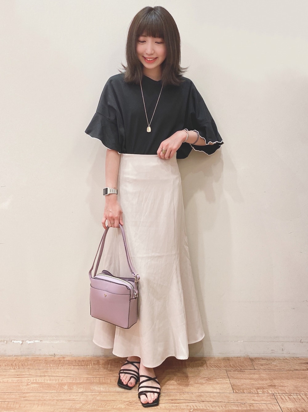 こんにちは、 ご覧いただきありがとうございます★ いいね、お気に入りありがとうございます🙏✨ フォルダインもとっても嬉しいです😊 袖フリルパイピングプルオーバー×マーメイドスカートのコーディネートです♬ トップスはゆったりとしたシルエットが今年らしいフリル袖プルオーバーです! 袖がフリルデザインになっていて、袖先がパイピング仕様になっているのがポイントです。 胸元はVネックデザインでデコルテがスッキリ見えます。 スカートは後ろのレースアップデザインが可愛いマーメイドスカートです! サイドファスナー有りで、すっきりとしたシルエットで着て頂けます。 ウエスト後ろは、ゴム仕様でフィット感も良く着心地楽ちんです! さらりとした素材感で歩くたび揺れる裾もオシャレです。 WORLD online Storeにも沢山のコーディネートを載せてます♪ →プロフィールの🖥をチェック👈