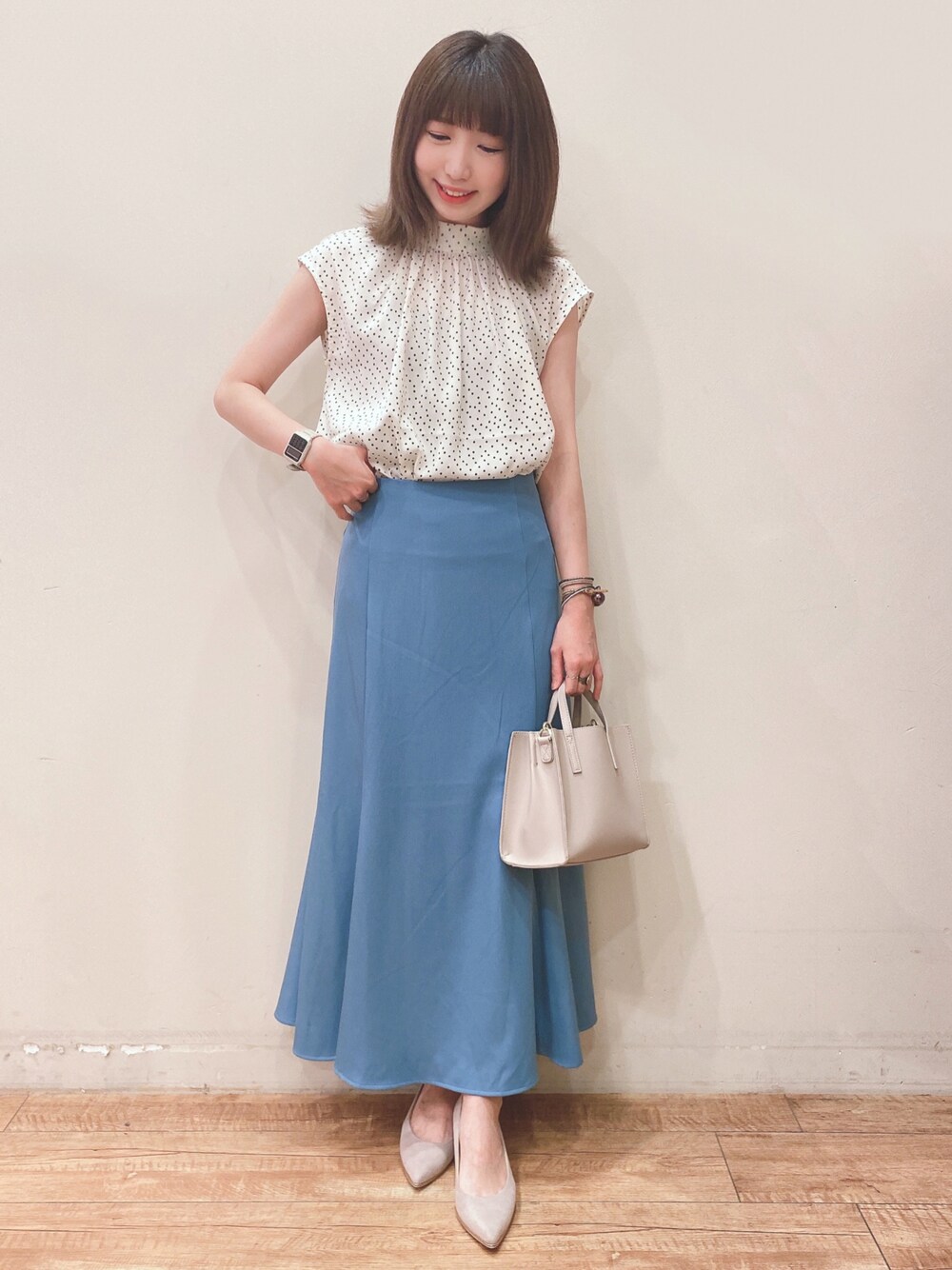 おはようございます、 ご覧いただきありがとうございます★ いいね、お気に入りありがとうございます🙏✨ フォルダインもとっても嬉しいです😊 ハイネックブラウス×マーメイドスカートのコーディネートです♬ トップスはとろみのある生地感がオシャレなナイルサテンのブラウスです! 大人っぽく見せるハイネックデザインに、衿元ギャザーでこなれ感UP♪ オンオフ問わず使えるデザインで着回しも◎ スカートは後ろのレースアップデザインが可愛いマーメイドスカートです! サイドファスナー有りで、すっきりとしたシルエットで着て頂けます。 ウエスト後ろは、ゴム仕様でフィット感も良く着心地楽ちんです! さらりとした素材感で歩くたび揺れる裾もオシャレです。 WORLD online Storeにも沢山のコーディネートを載せてます♪ →プロフィールの🖥をチェック👈