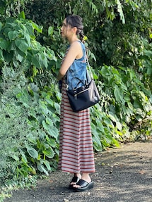 こんにちは、 ご覧いただきありがとうございます★ いいね、お気に入りありがとうございます🙏✨ フォルダインもとっても嬉しいです😊 6月もよろしくお願いします🙇♀️ 今月から異動で新しいお店に慣れるまで投稿は夕方〜夜メインになります。 タック&はしごレースチュニックブラウス× ギャザースカートのコーディネートです♬ トップスはスッキリ見えるバンドカラーに、はしごレースとタックディテールがオシャレなフレンチスリーブブラウスです! フロントの丸いボタンも可愛いです。 縦ラインですっきり長めの着丈で体型カバーにも◎ スカートは歩くたび軽やかに揺れるギャザースカートです! 生地はたっぷり使用しているものの、程よく落ち感のある素材で広がりすぎず大人な装いに。 ウエストは後ろがゴム仕様なのでリラックスして着ていただけるのもポイントです。 WORLD online Storeにも沢山のコーディネートを載せてます♪ →プロフィールの🖥をチェック👈