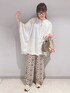 こんにちは、 ご覧いただきありがとうございます★ いいね、お気に入りありがとうございます🙏✨ フォルダインもとっても嬉しいです😊 スクエアポンチョシャツ× チマヨ柄イージーパンツのコーディネートです♬ この日ものすごい雨の日だったので、 スニーカーでお出かけ👟 ブラウスはエアリーでリラックスした雰囲気が今年らしいポンチョ型シャツです! 身体をおおう存在感あるシルエットが特徴的な1枚です。 アクセントにトレンドのネックリボンが大人かわいい印象になります。 細身のパンツはもちろん、スリットが入っているのでスカート合わせも◎ ボトムス……去年の着回し(DRESKIP) WORLD online Storeにも沢山のコーディネートを載せてます♪ →プロフィールの🖥をチェック👈