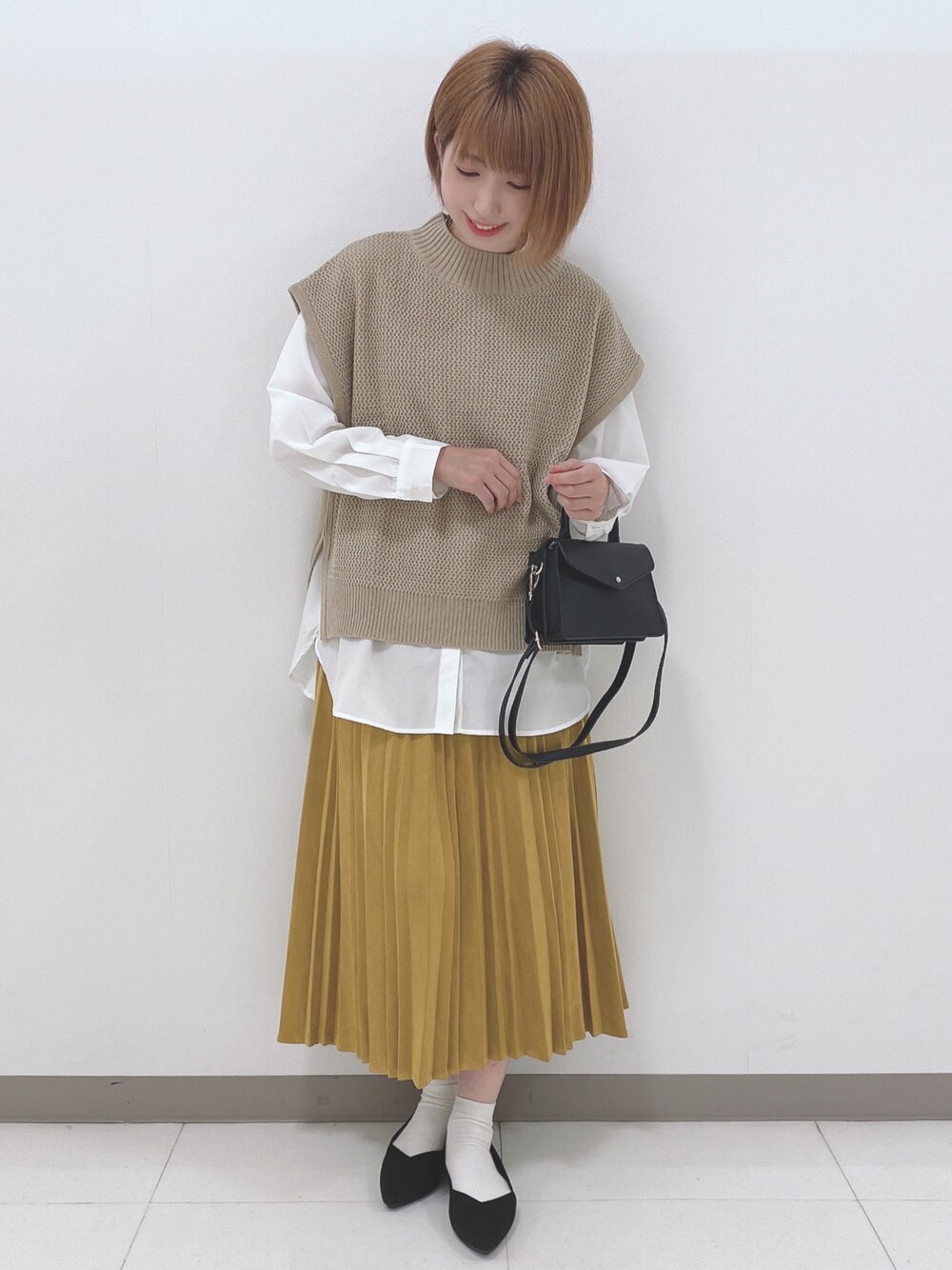 こんにちは、 ご覧いただきありがとうございます★ いいね、お気に入りありがとうございます🙏✨ フォルダインもとっても嬉しいです😊 メッシュ編地ニットベスト× バンドカラー シャツ× ランダムプリーツスカートのコーディネートです♬ ベストはメッシュ編みがかわいいニットベストです! 肩が落ちたデザインで、肩回りをすっきり見せてくれるのも嬉しいポイントです。 インナーはシンプルなデザインのバンドカラーチュニックシャツです! お袖はややゆったり目で全体的にゆったりシルエットです。 シンプルなデザインなので着回し◎ スカートは上品なミディー丈のアコーディオンプリーツスカートです! きちんと感がありながら、ウエストはゴム仕様で楽ちん。 素材もストレッチの効いたポンチスエードで着心地◎ WORLD online Storeにも沢山のコーディネートを載せてます♪ →プロフィールの🖥をチェック👈