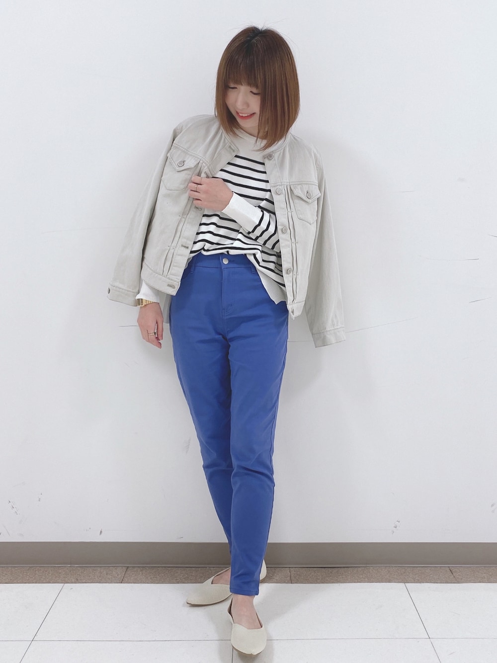 こんばんは、 ご覧いただきありがとうございます★ いいね、お気に入りありがとうございます🙏✨ フォルダインもとっても嬉しいです😊 🤍ノーカラーGジャン 🎹なめらかタッチ総針ニット 💙ウルトラ スキニーパンツ ジャケット♡ 大人女子にピッタリなノーカラーデニムジャケット 短すぎず長すぎない着丈感でバランスが取りやすく、ワイドパンツやマキシ丈のフレアスカートとも相性が良く着回し◎ ニット♡ 春先にちょうど良い肌触りで着心地の良いニットプルオーバーです。 甘くなりすぎないシンプルなデザインで、ネックも広すぎず丁度いいあき具合です。 前後差があり脇スリットでこなれ感のある1枚 レーヨンのさらっとしたニット素材です。 スキニーパンツ♡ しっかりストレッチで穿き心地の良いスキニーパンツ。 ウエストのフィット感が心地良い作りになっています。 ストレッチ入りで動きやすく、レギンス感覚で履けるのでお出かけはもちろん、おうち時間も快適に過ごして頂けます。 WORLD online Storeにも沢山のコーディネートを載せてます♪ →プロフィールの🖥をチェック👈