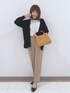 こんにちは、 ご覧いただきありがとうございます★ いいね、お気に入りありがとうございます🙏✨ フォルダインもとっても嬉しいです😊 ・・・・・・・・・・・・・・・・・ オフィスカジュアル♪ ・・・・・・・・・・・・・・・・・ 🖤レーヨンニットカーディガン 🤍配色スタンドカラーブラウス 🧸ストレッチテーパードパンツ カーディガン♡ やや長めの着丈で気になるヒップまわりをカモフラージュします。 前を開けたままさらっと羽織れてとっても便利! インナーを選ばずに気軽にさっと羽織れるデザイン。 ブラウス♡ パール調釦を衿元と袖口に施し、華やかで女性らしい雰囲気。 配色使いがアクセントとなりメリハリのあるフェミニンブラウス。 衿元と袖口のギャザーが可愛い印象です。 パンツ♡ すっきりシルエットテーパードパンツ! シンプルなデザインで穿きやすいです。 センタープレス入りで、すっきりと脚長見え効果があります。 ストレッチ入りで柔らかな素材です。 WORLD online Storeにも沢山のコーディネートを載せてます♪ →プロフィールの🖥をチェック👈