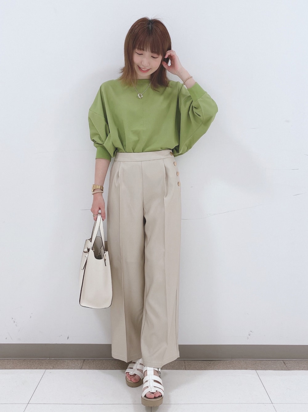 こんばんは、 ご覧いただきありがとうございます★ いいね、お気に入りありがとうございます🙏✨ フォルダインもとっても嬉しいです😊 ・・・・・・・・・・・・・・・・・ シンプルコーデ♪ ・・・・・・・・・・・・・・・・・ 🍀イージーケアー リブ切替ドルマンブラウス 🤍金ボタンワイドパンツ トップス♡ ドルマンスリーブのボリュームのあるお袖が可愛いブラウス! 裾は、前後差を付ける事で、インスタイルでもアウトスタイルでもサマになるデザインです。 首元と袖口の異素材のリブデザインがポイントになっています! 洗濯後にシワになりにくいので、お家でのお手入れが楽ちんなイージーケアー機能付き。 パンツ♡ 金ボタン使いがアクセントになっています。 センタープレスですっきりした印象に。 ウエスト後ろ部分はゴムになっているので、楽に脱着できる仕様です。 WORLD online Storeにも沢山のコーディネートを載せてます♪ →プロフィールの🖥をチェック👈