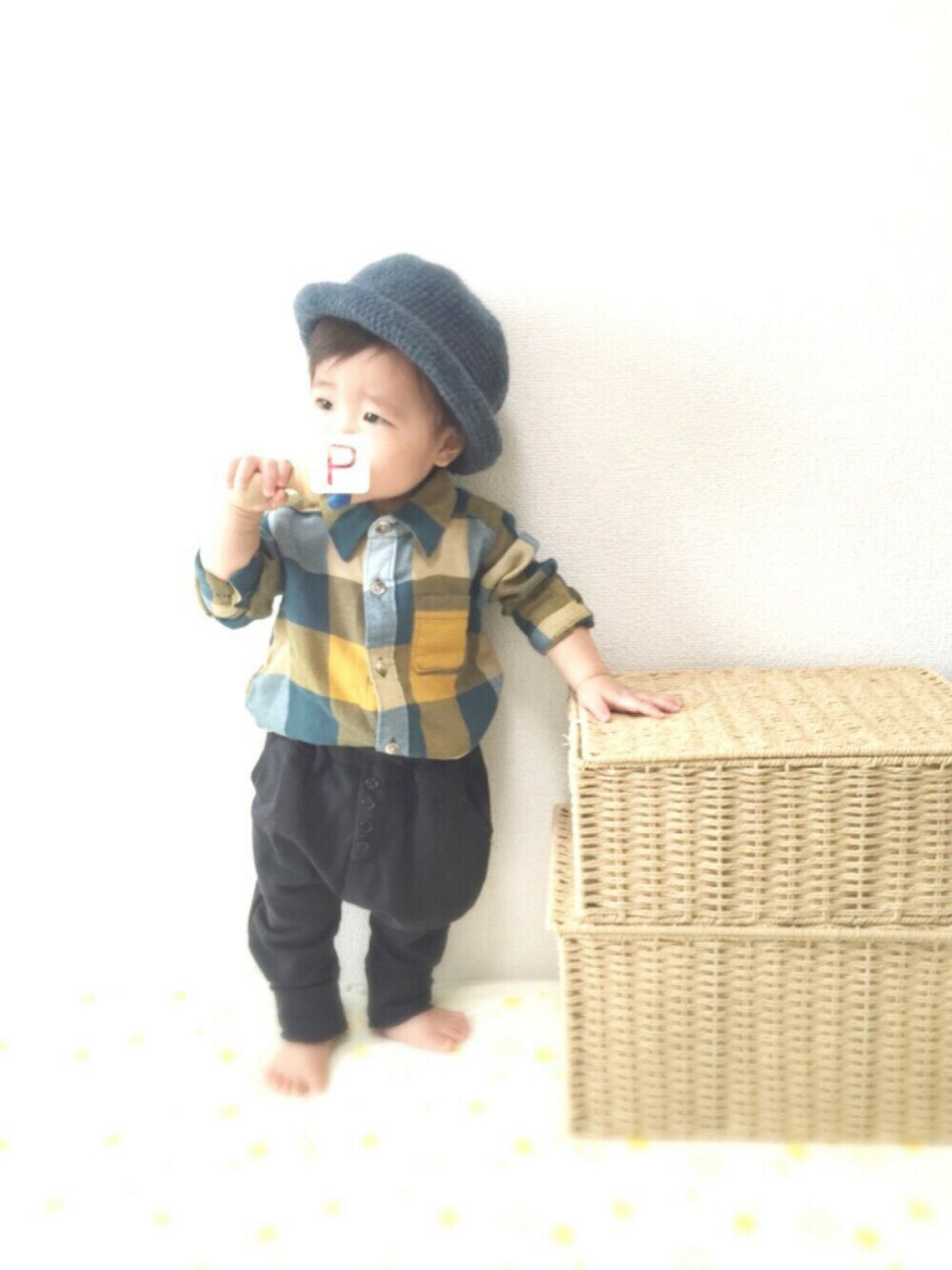◎ちょっとおめかし◎ シャツとハット合わせてお出掛け🤗 やっぱりサルエルにはトップスインする方が好きです💞 ******************** P-ta◎13m 身長…72.0 体重…8.2 サイズ トップス…80(12-18m) パンツ…80 ハット…50ぐらい??