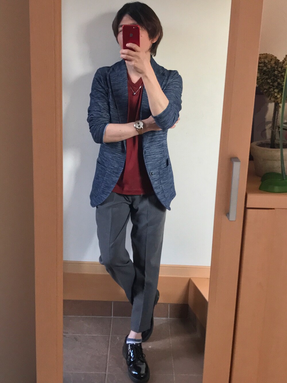 いつも、見てくださりありがとうございます😊 今日は久しぶりにジャケットコーデです。スラックスで安定😆 大体スキニーを履くのでスラックス、楽😁 最近は 朝晩が少し肌寒いのでTシャツにジャケットはいいですね👍 良かったら♡、お気に入り、フォロー、お気軽にお願いします✨