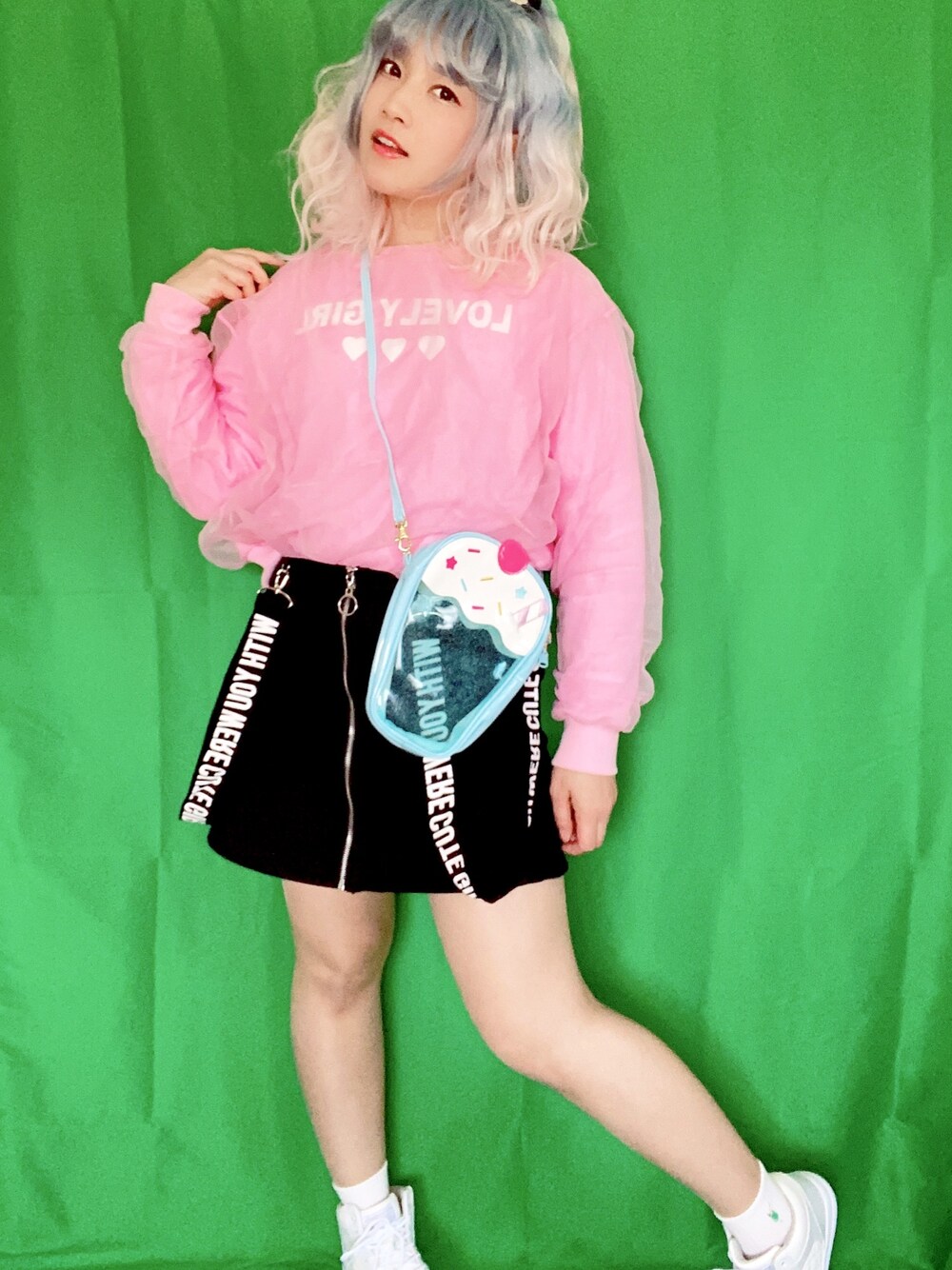 WCコーデ♡ クリームソーダのショルダーとソックスにもクリームソーダのピンク×サックスコーデ