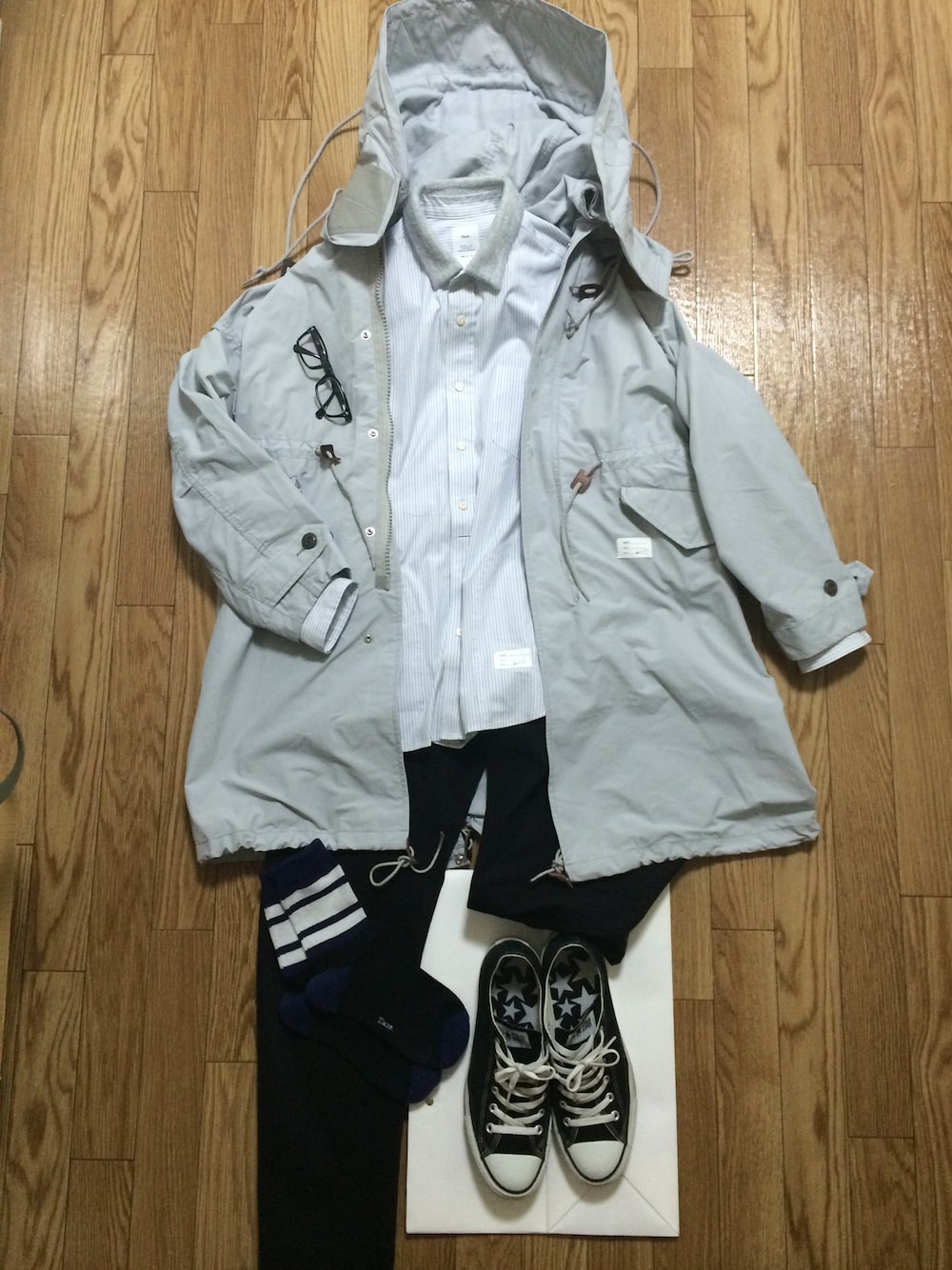 Name.のモッズコートを主役に。怪しい人に見えるのか、電車ではあまり隣りに人が座ってこないという副次効果があります(´・Д・)b それにしても、暖かくなってきましたね。来週くらいからは、今期の新作が着れそうな予感(*^^*)