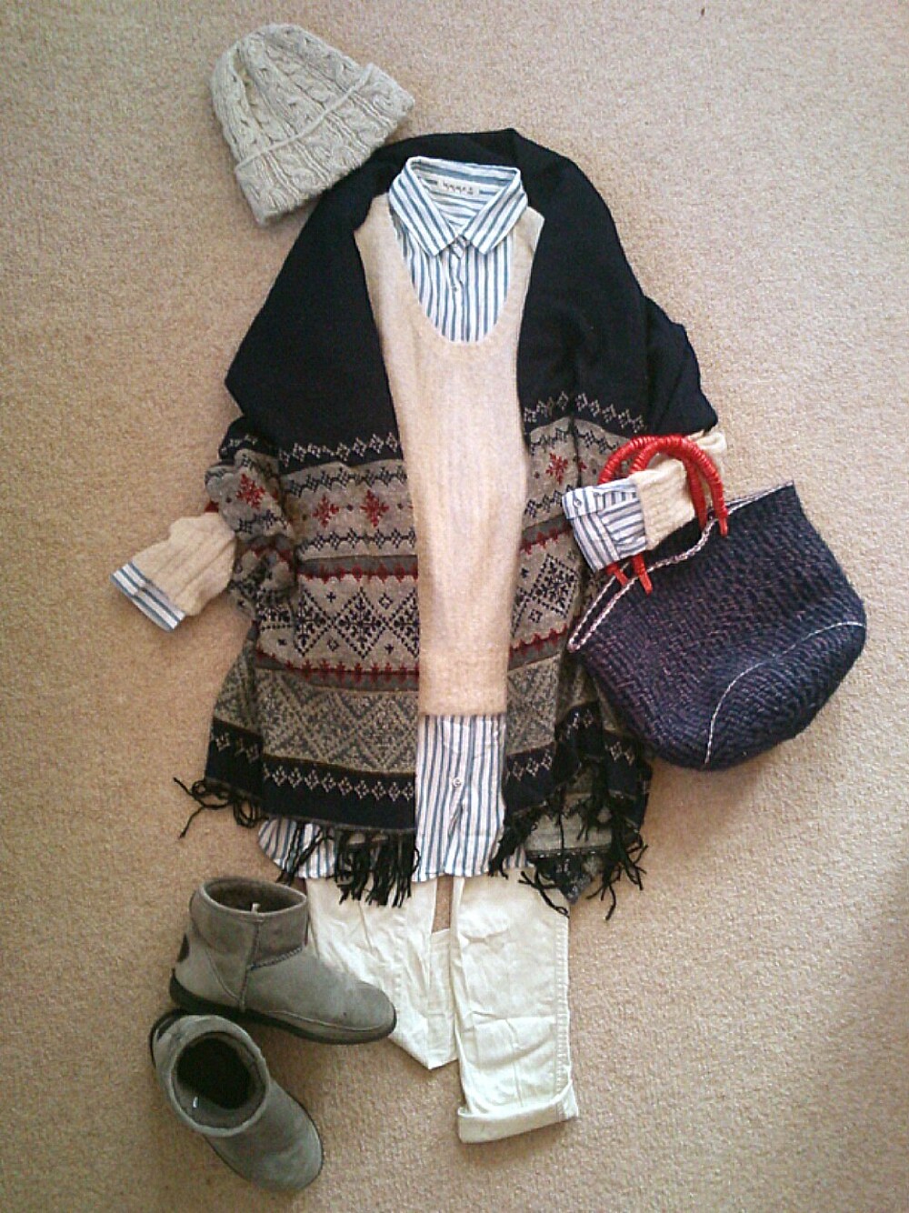 シャツ/SM2 ニット/ナノユニバース パンツ/coen ニット帽/niko and... ストール/niko and... バッグ/niko and... シューズ/MINNETONKA お日様ぽかぽか♪ アウターいらずです。