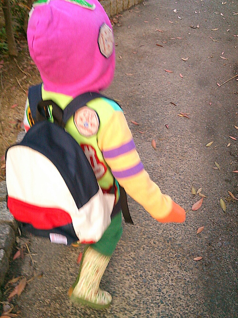 パーカー/GOTHAM パンツ/JUNK STORE リュック/coen レインブーツ/coen 2歳のときの。 中身はオムツなり。