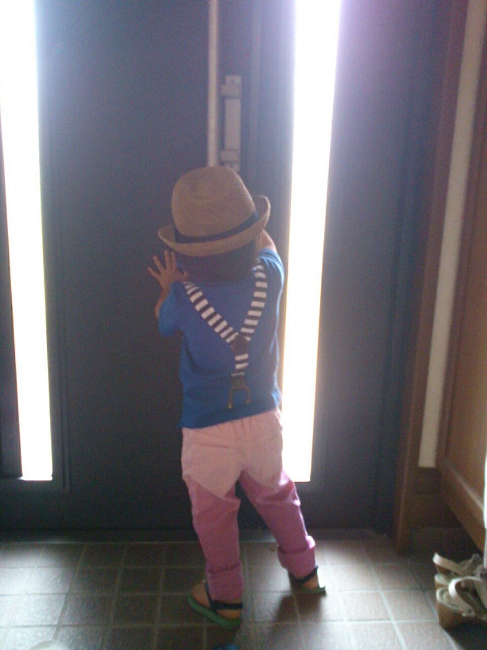 ポロシャツ/kladskap パンツ/赤すぐ ハット/Net shop サンダル/ハワイアナス
