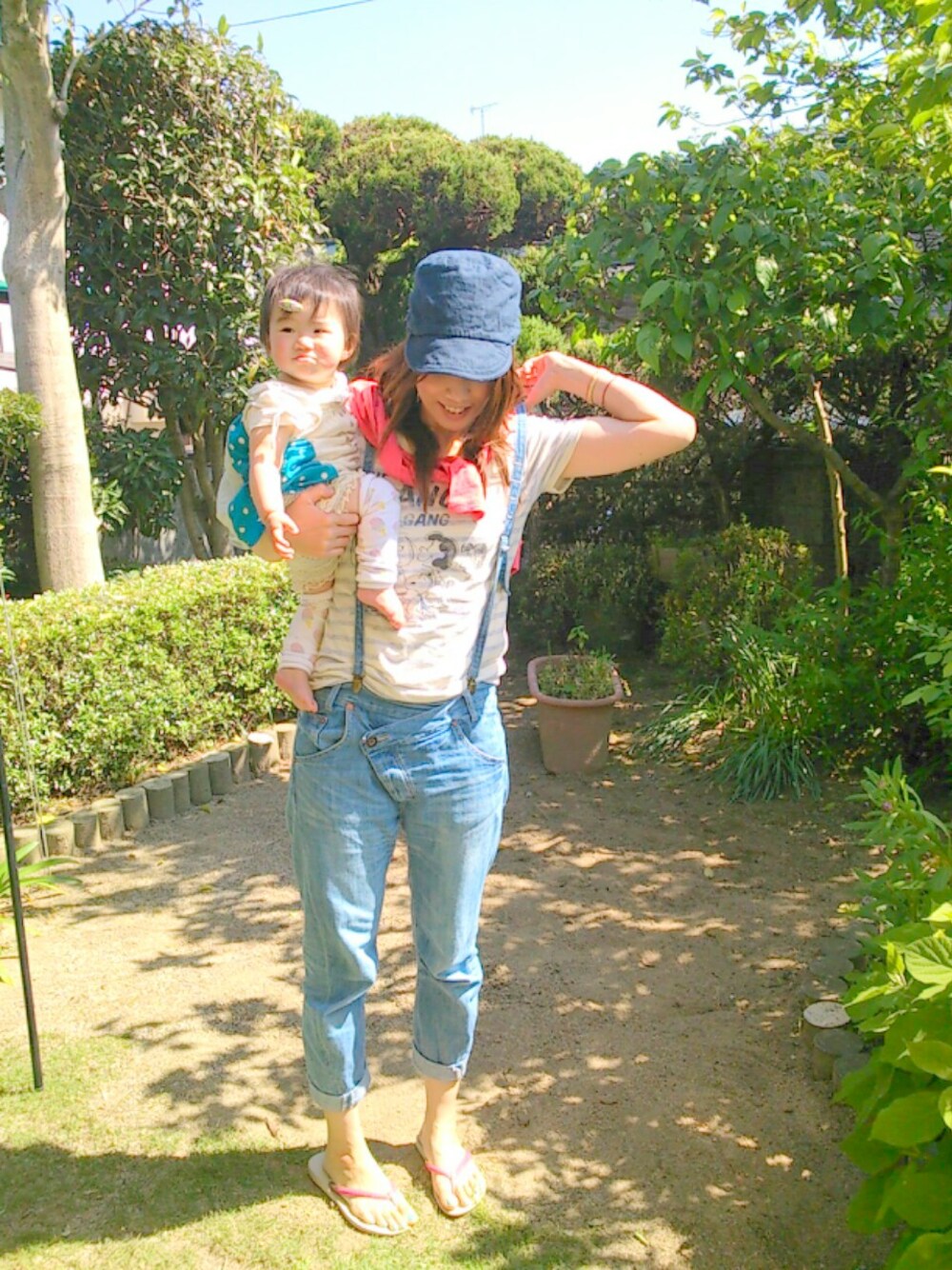 今日は友人宅でBBQでした♪ Tシャツ/PEANUTS カーディガン/e-zakka パンツ/niko and... キャップ/studio CLIP サンダル/ハワイアナス