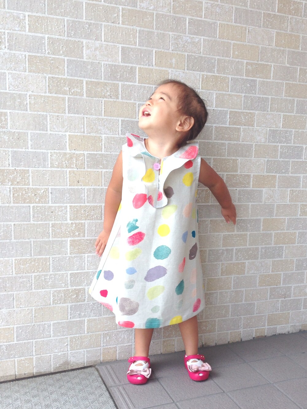 パターンレーベルさんの本を見て作ってみたワンピース。気に入ってくれたようで嬉しい。