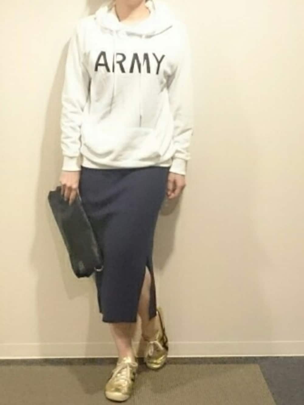 パーカー大好きです🙌加えてこのニットスカートも伸縮性があって、履き心地がいいです💮伸びる伸びないは重要ですよね笑 * 女らしいスカートにハデハデスニーカーを合わせました👟