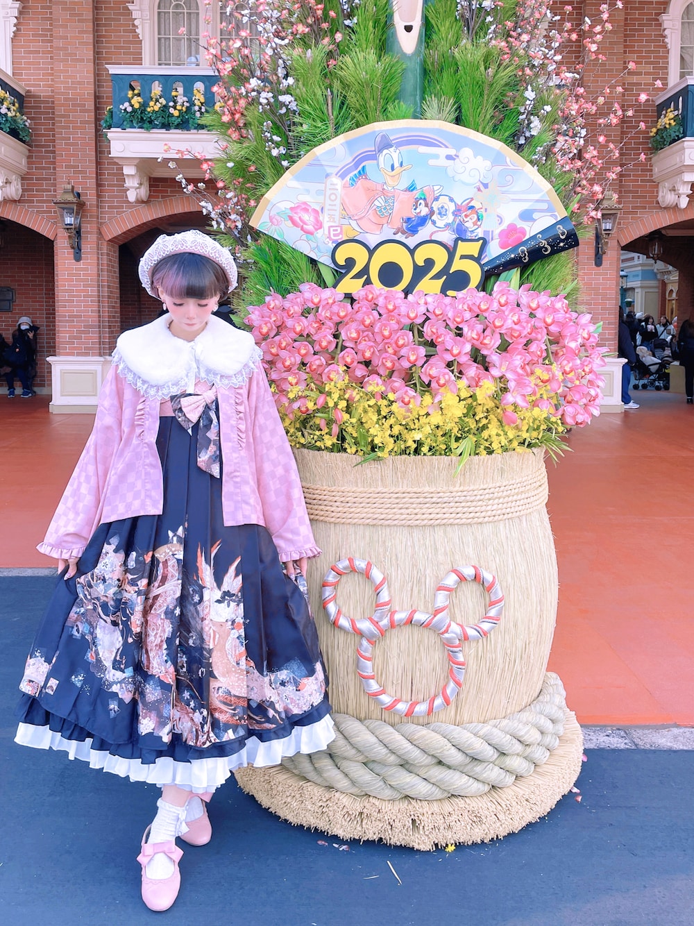 2025年 和ロリコーデで ディズニー初めしてきました🎍 しまむら 美沙子ちゃんコラボ ベレー帽、パンプス、ティペット