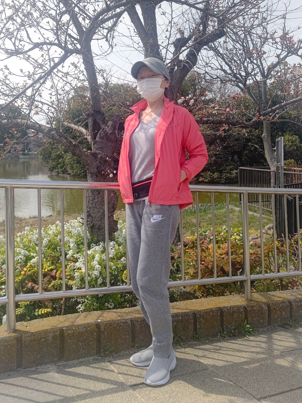 2022年3月25日 ~無理やり~ 本日はNIKEの日。プーマ、アディダス派なのでNIKEは殆ど持ってない。何年も着ていないピンクのブルゾンを引っ張り出して着用。 年甲斐もなく派手すぎる(笑) せっかくなので公園をグルグルジョギングしてきます♪ 考察:スウェットはワンサイズ下(150)でも良かったかも。 意外や意外、歳をとるほど肌がくすみ、くすんだ色味が似合わなくなる(おばちゃんが派手になるのはそういうことか)