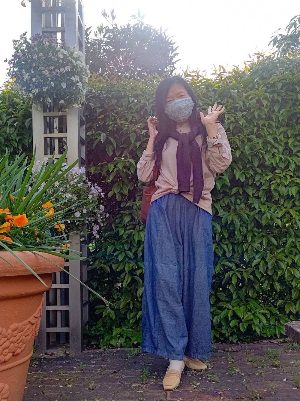 5月1日~初めて~ 初めて、こういう靴に靴下を履いてみました(寒かったので)。 初めて、セーターを肩掛けしてみました(寒かったので)。 今流行りの斜め掛けはこの格好に合わなかったので辞めておきました。