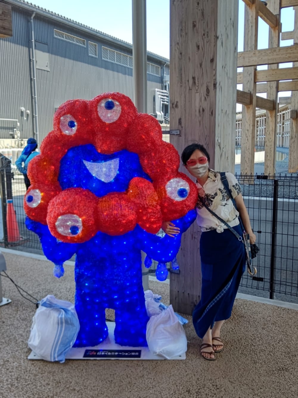 南西にあるミャクミャクは写真穴場スポット!? サングラスにマスクで中々の変人