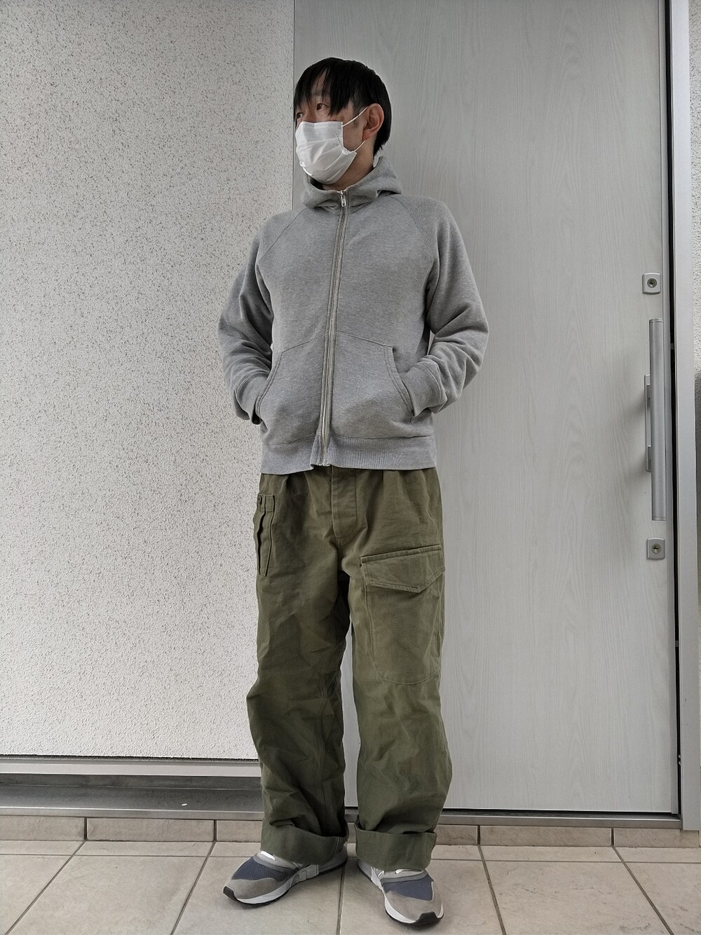 朝は肌寒いのでフーディーが必要