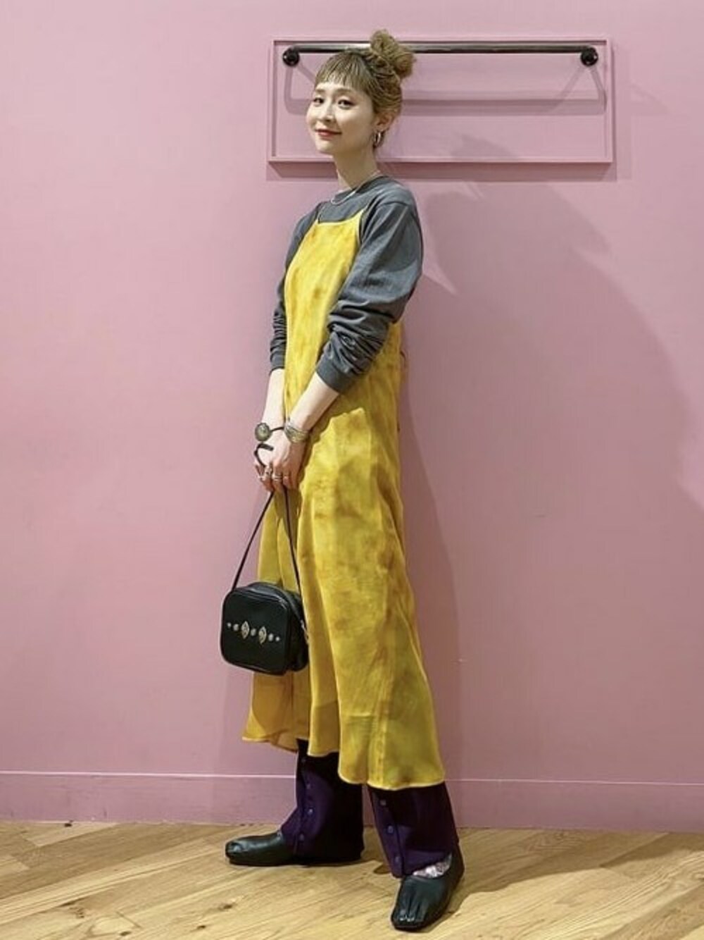 ポイントはイエロー☆タイダイワンピースとTシャツのバックプリントのカラーを合わせました^^